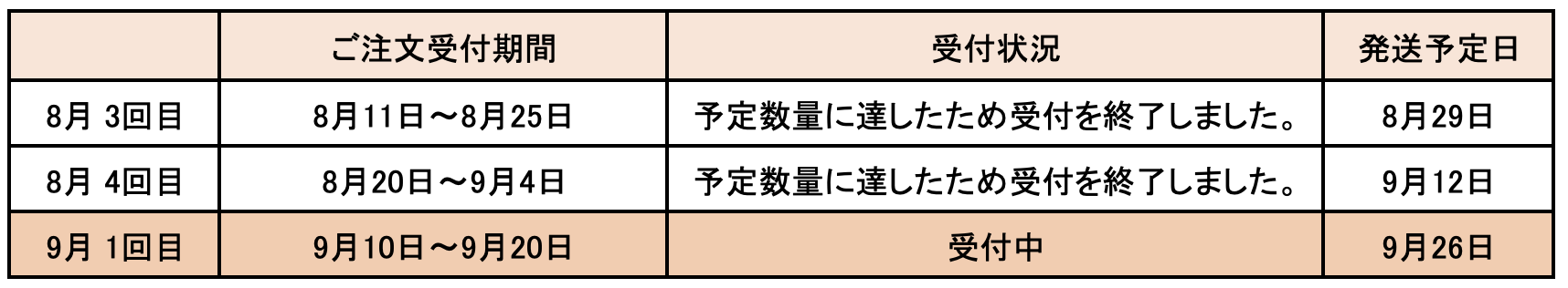 ※受付期間中であっても、予定数量に達した時点で受付を締め切り、次回分にてご注文を承ります。あらかじめご了承くださいませ。