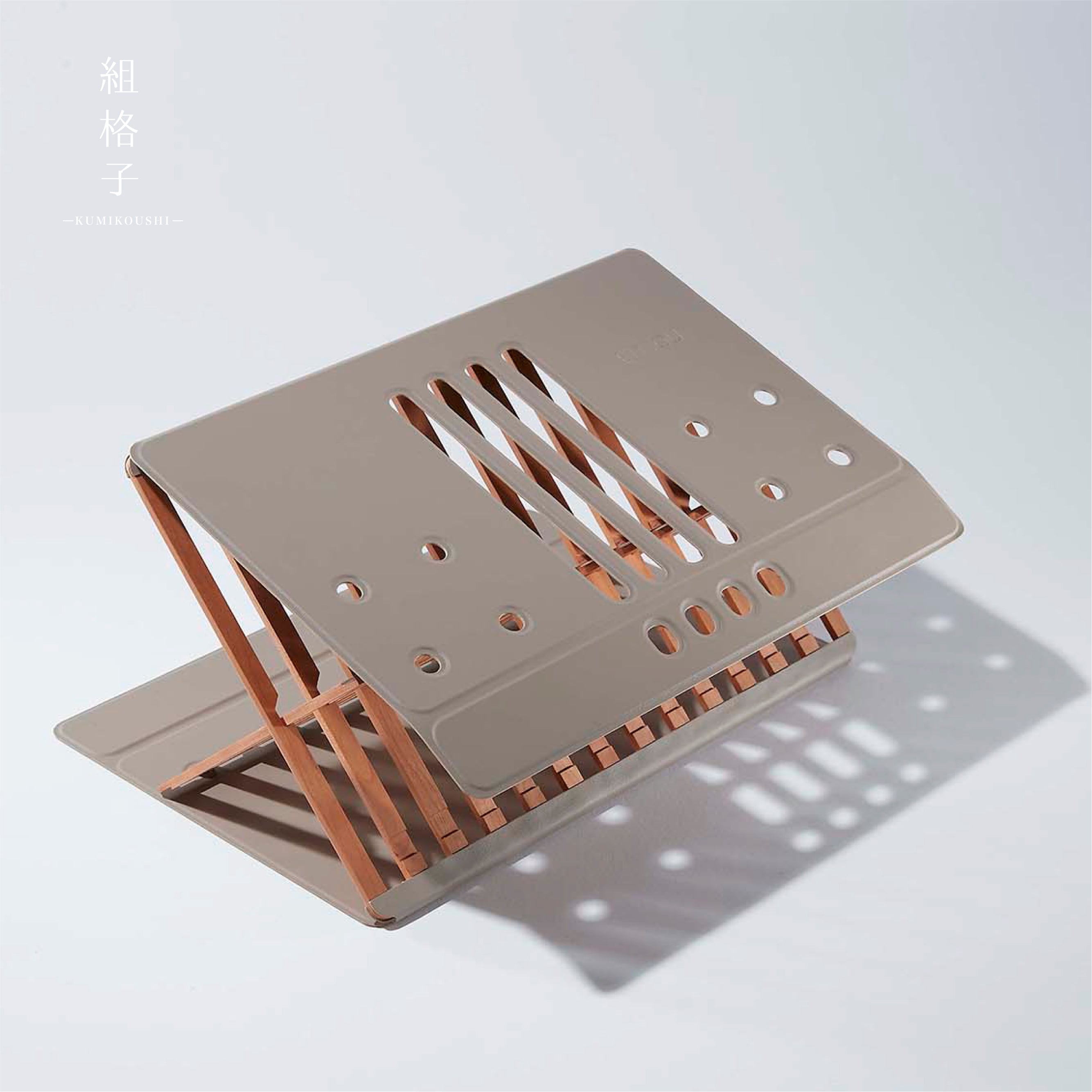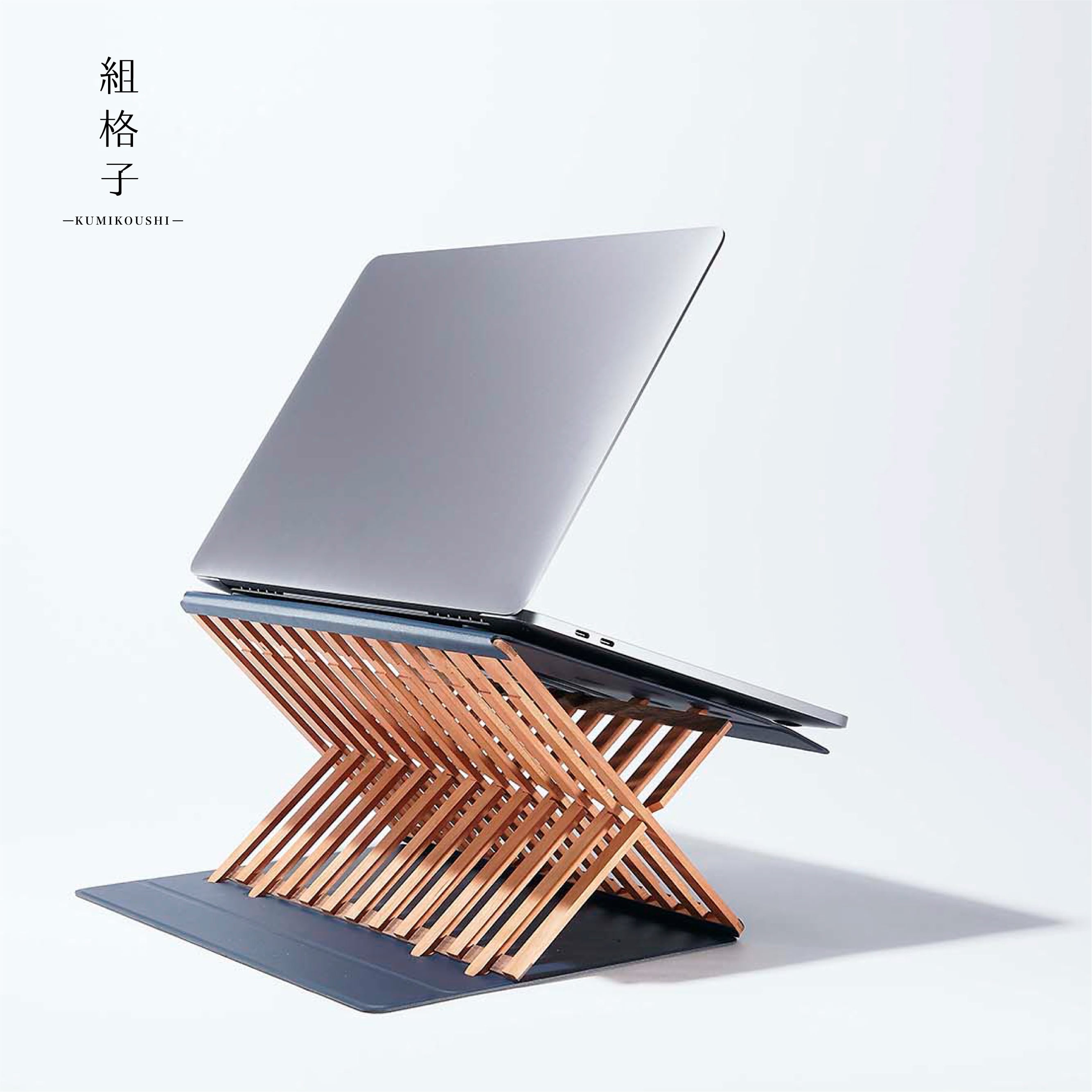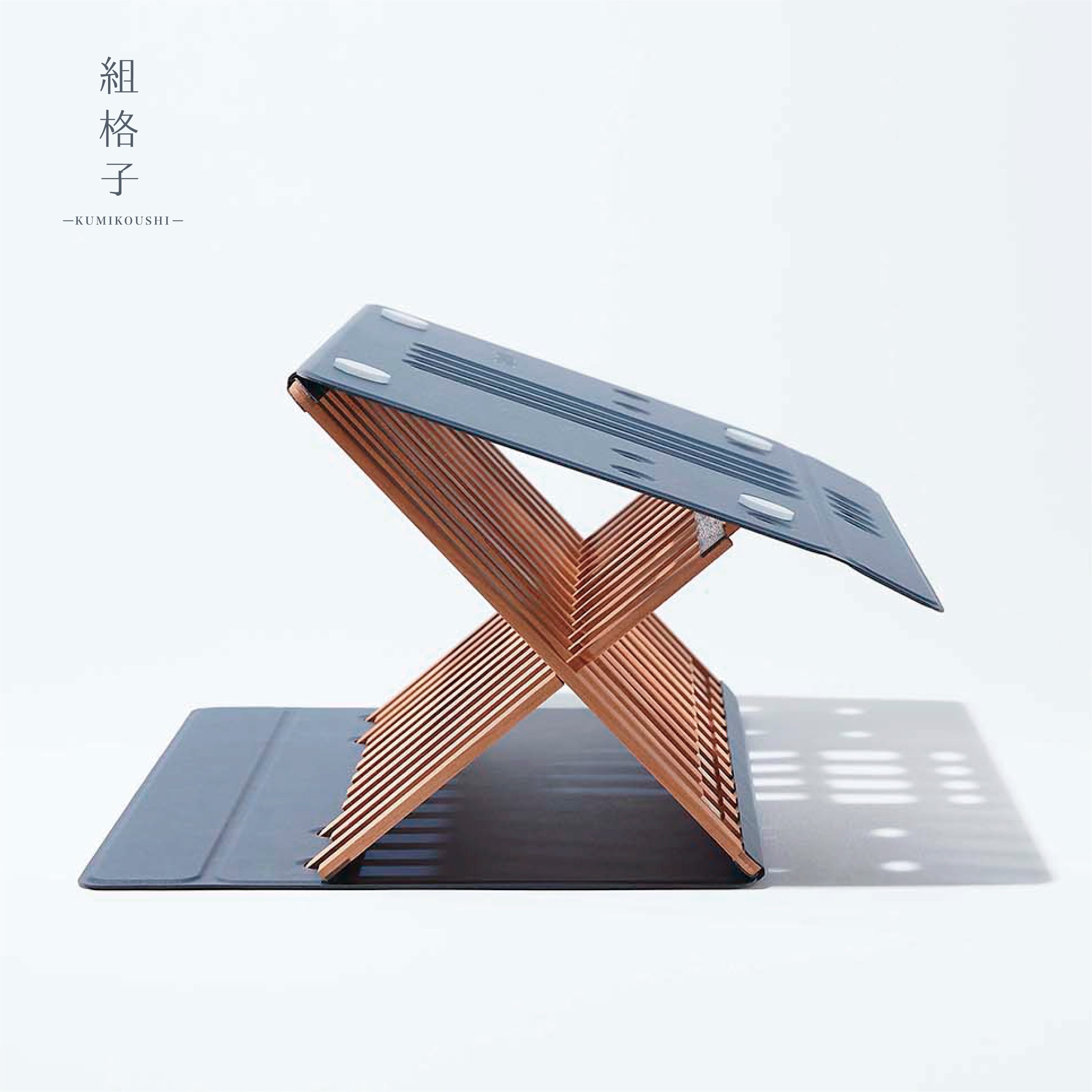 天然木のぬくもりが心地よい、折りたたみ式のノートパソコンスタンドです。