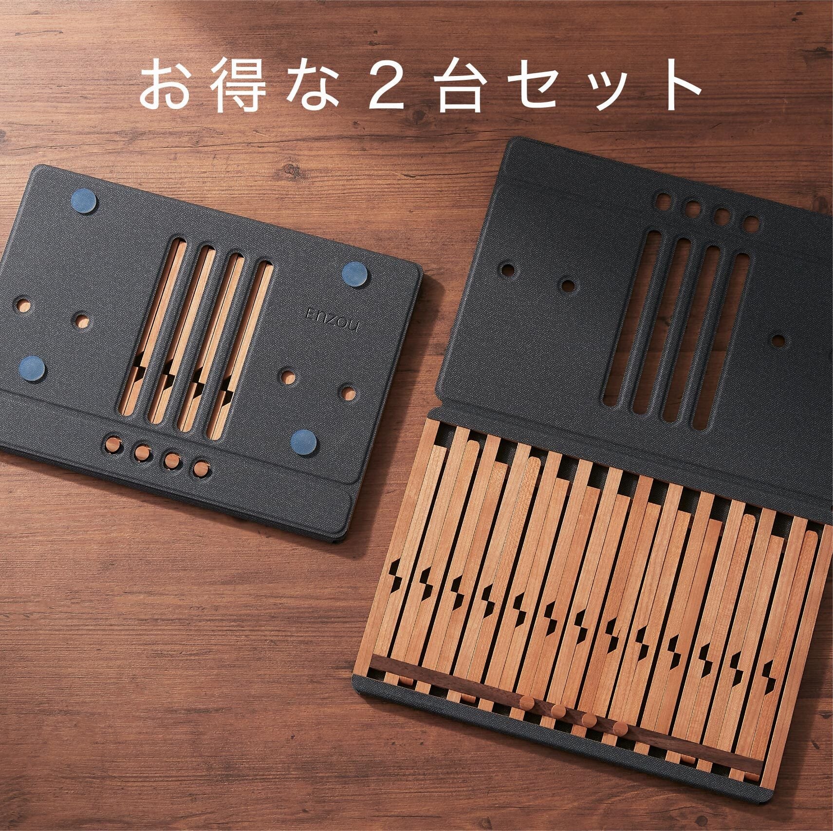 【お得な2台セット】天然木の折りたたみ式パソコンスタンド・書見台